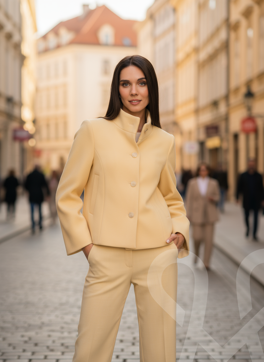 Elegantné nohavice v jemnom pastelovo žltom odtieni, ktoré okamžite oživia každý outfit a dodajú mu svieži nádych. Majú rovný strih s pukmi, dve praktické vrecká po bokoch a zapínanie na zips a gombík. V páse sú doplnené o pútka na opasok, vďaka čomu si ich ľahko prispôsobíte podľa svojho štýlu. Vďaka svojej farebnej jemnosti aj nadčasovému dizajnu sú ideálnym kúskom na každodenné nosenie do práce či rôzne spoločenské udalosti.